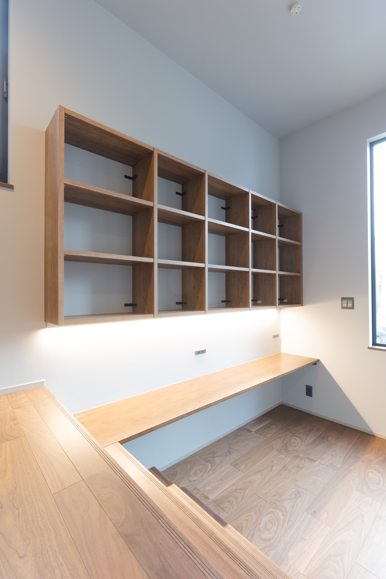 プライベートルームにはデスクを造作してワークスペースに。限りあるスペースでも個人空間を作ることで、安心できる場所が出来る。