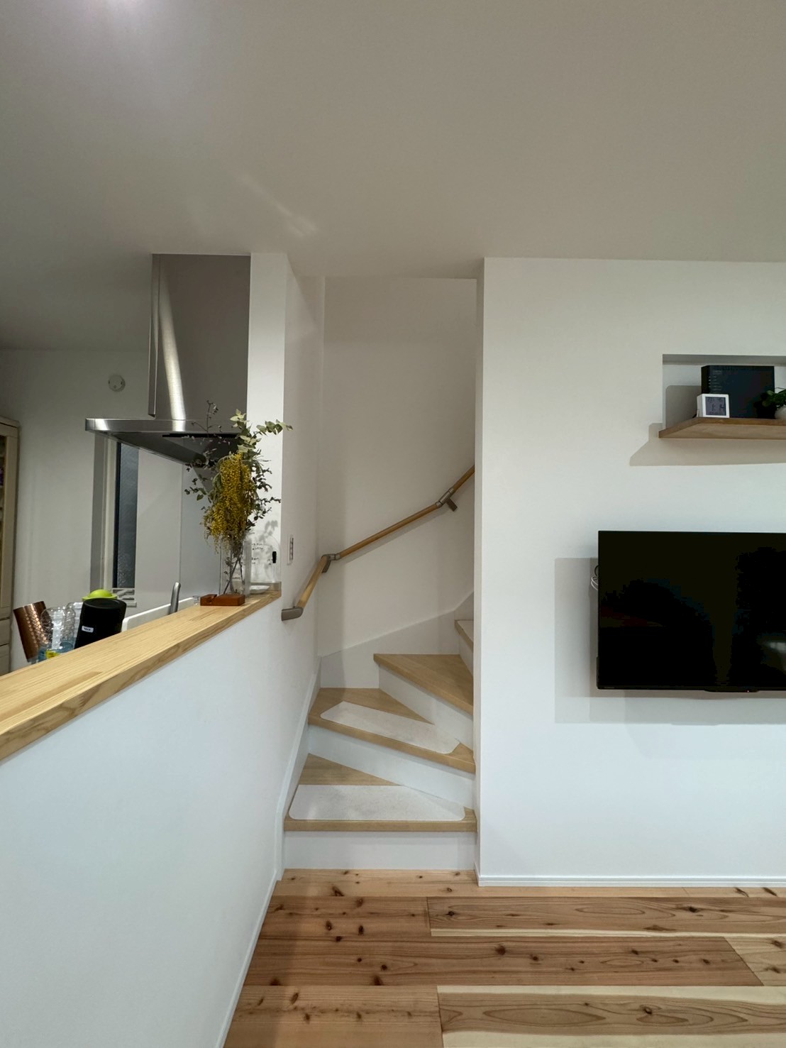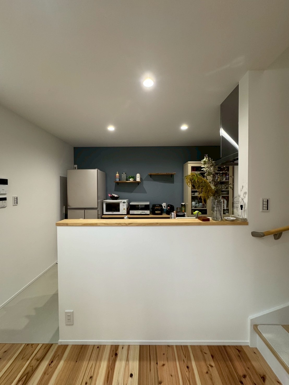 「手元を隠したい」との要望がありキッチンは壁をたてニッチを作成。