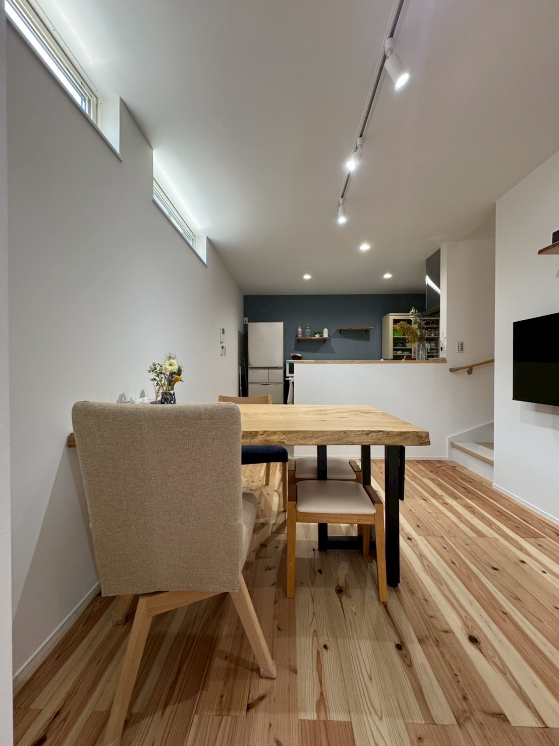市街地でも暮らしやすいおうち、わんこと暮らす3階建て。住宅街での建築は限られたスペースになりがちですが、3階建てにすることで駐車も可能で、要望に沿った間取りもしっかりと実現。