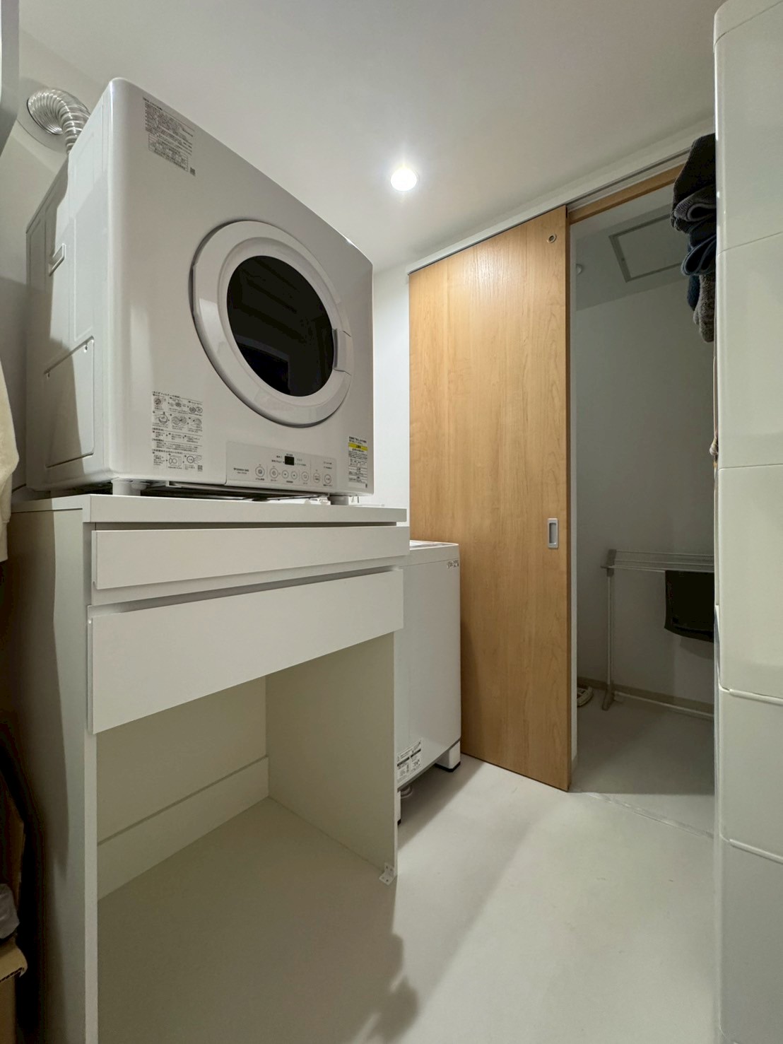洗濯は基本室内干し。細かいものは乾燥機におまかせ。基本的に3階は寝るだけのスペースとして使用している。特に生活に苦労はないとのお話。